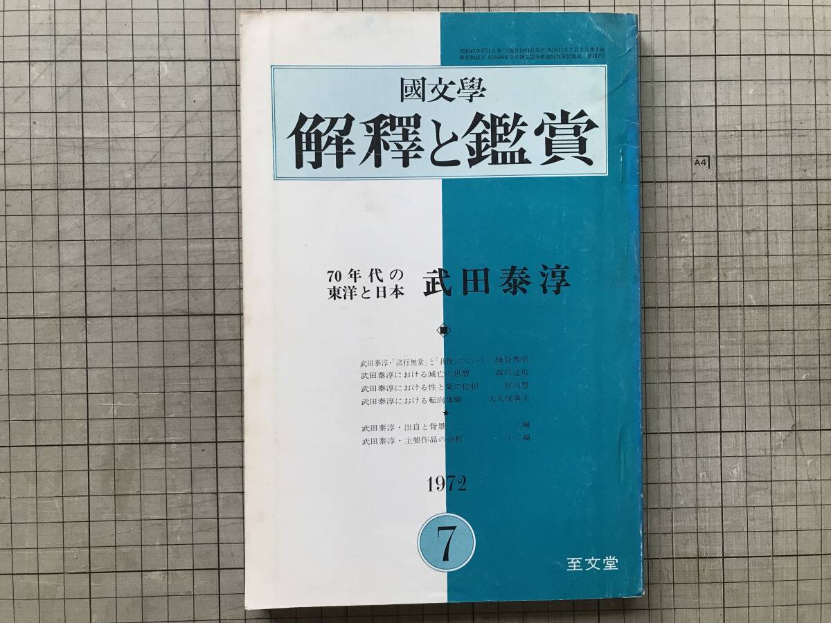 > 『国文学 解釈と鑑賞 第467号 第37巻第8号 70年代の東洋と日本 武田泰淳』桶谷秀昭・饗庭孝男・尾崎秀樹・柘植光彦 他 至文堂 1972年 10194