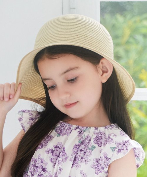 - 新品 組曲 anyFAM エニィファム 後ろ結びO.K. 大好評!日よけ UV対応 麦わら帽子 子供用 女の子 52cm 白 ベージュ 肌色 UVカット