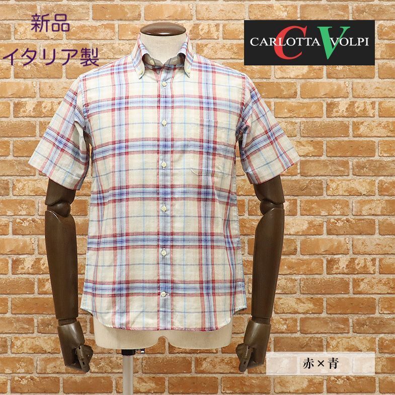 - 【新品・M・イタリア製】CARLOTTA VOLPI・リネン混チェック柄 ボタンダウン半袖シャツ