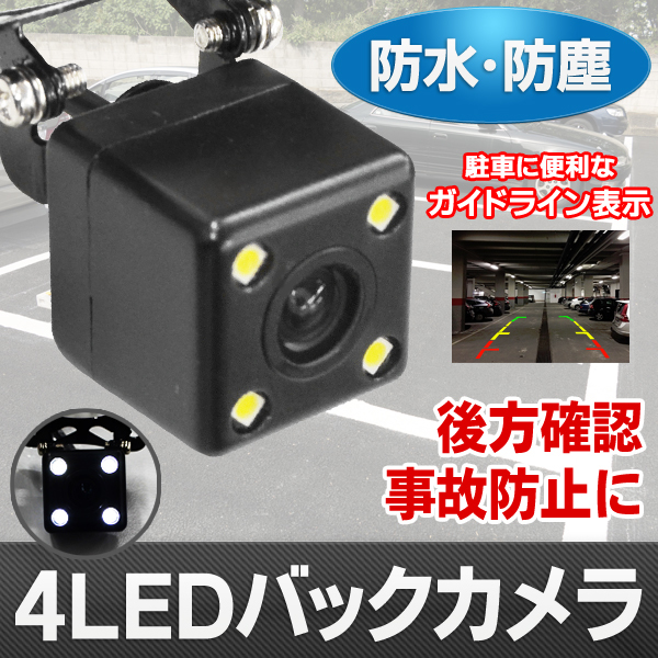 - 送料無料!車用バックカメラ 防水 防塵 最高ランク 4灯LED搭載 事故防止 駐車場 後方 安全確認 軽量車用バックカメラ