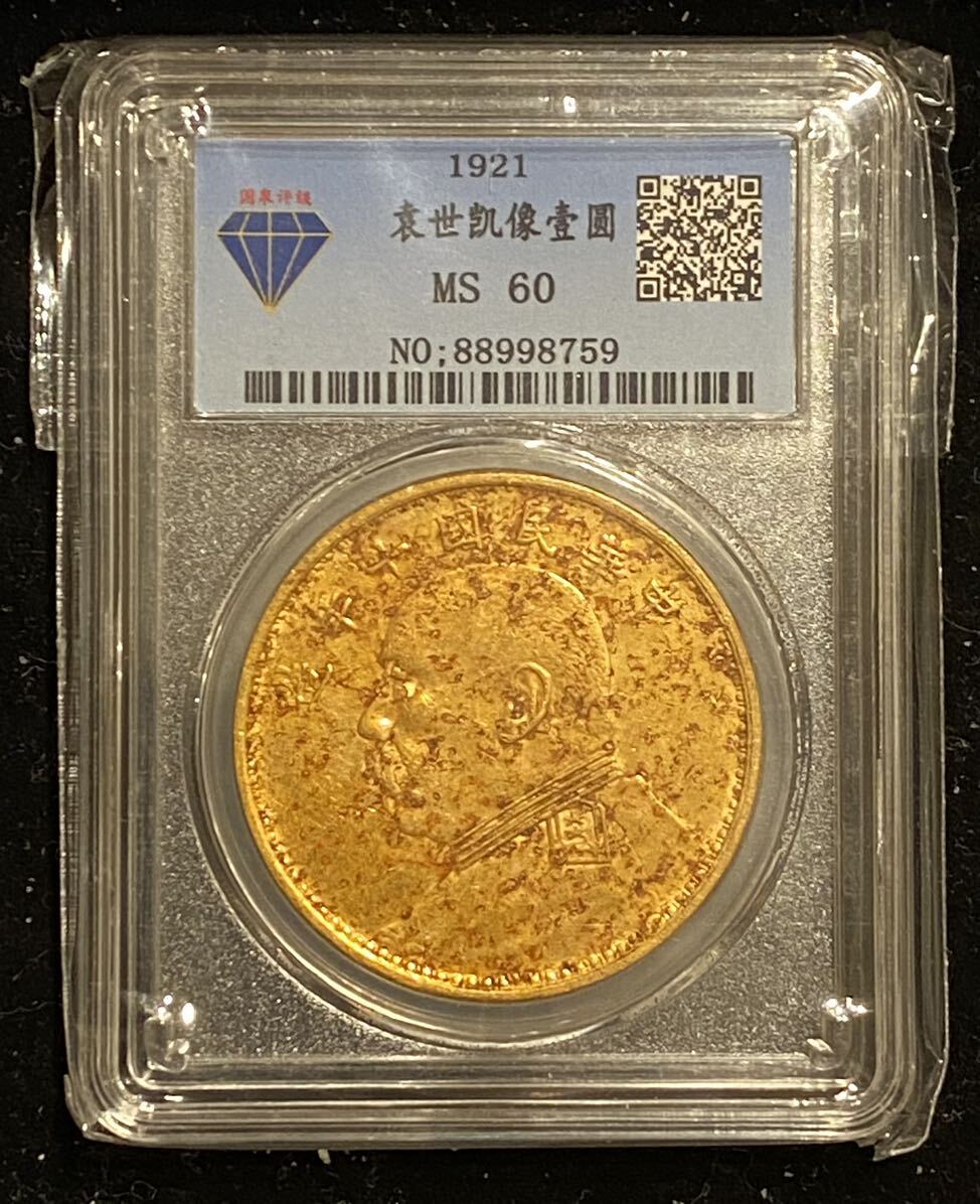 - 中国 袁世凱壹圓金幣 1921年 国泉評級MS60 NO.88998759 中国硬貨 中国古銭 骨董品