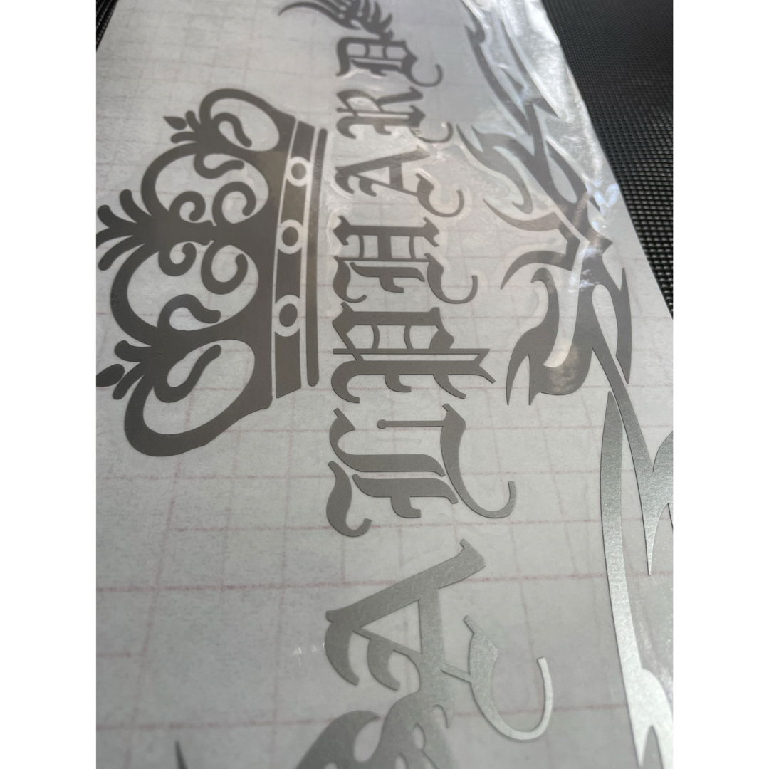 - アルファード 王冠 羽 トライバル カッティングステッカー 防水 転写シール リアガラスなどに 銀色