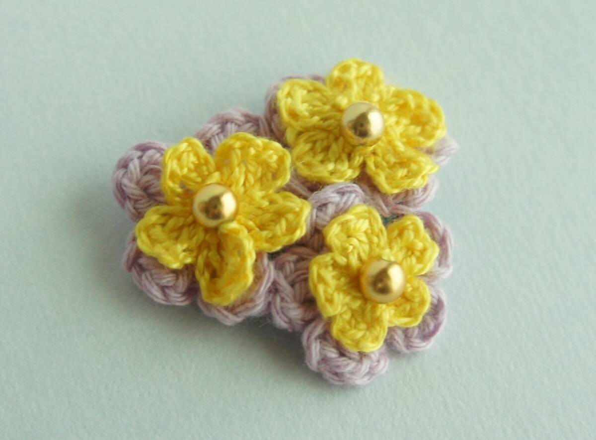 - ♪ ハンドメイド ブローチ お花 かぎ針編み 極細毛糸 刺しゅう糸 ビーズ