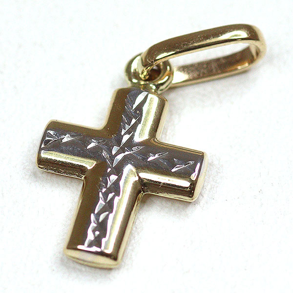- K18YG×K18WG クロス ペンダントトップ コンビ カット 0.5g 極小 チャーム 750YG×WG 未使用品