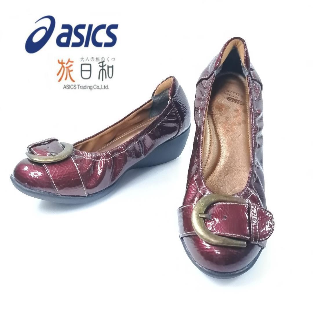 > hws01044 アシックスウォーキング ASICS WALKING TABIBIYORI ベルト トゥスプリング 旅日和 ボルドー エナメル 23cm ウエッジソール