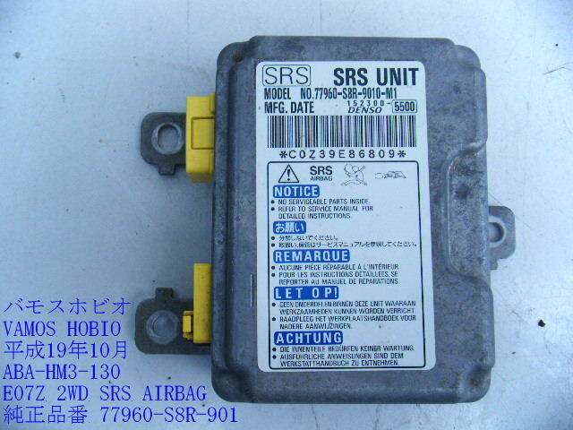 > ◆ABA-HM3 ホンダ バモスホビオ エアバックコンピューター エアバッグコンピューター SRS UNIT 77960-S8R-901 [13334]
