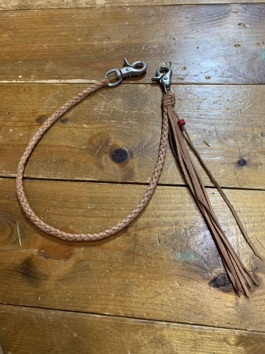 - ビンテージウッドビーズ付き 8本ウォレットロープ 牛革レザー フック付
