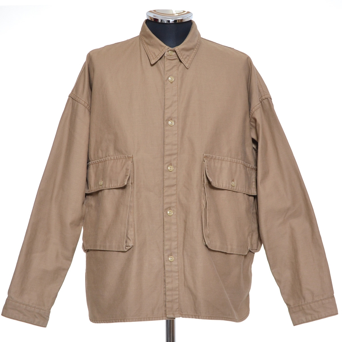 - 〇493769 ADITIONAL アディショナル メンズビギ ○ミリタリーシャツ 長袖 チンストラップ付き ★ サイズL サンドベージュ