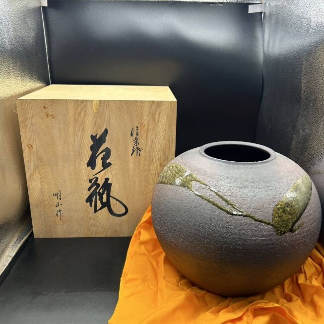 - 信楽焼 花瓶 花入 花器 花生 陶器 壺 明山作 高さ25cm 伝統工芸 573