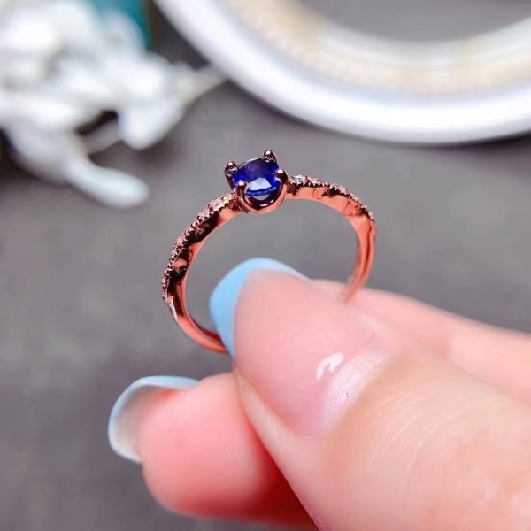 繊細なサファイアブルーのジェムストーンリング、925スターリングシルバー、4x5mm、証明書
