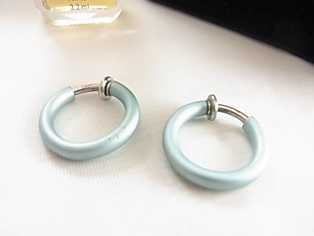 - ♪ビンテージ/ヴィンテージ 光沢感のあるスカイブルートーン ピアスに見えるデザイン フープ リング 輪 輪っか イヤリング