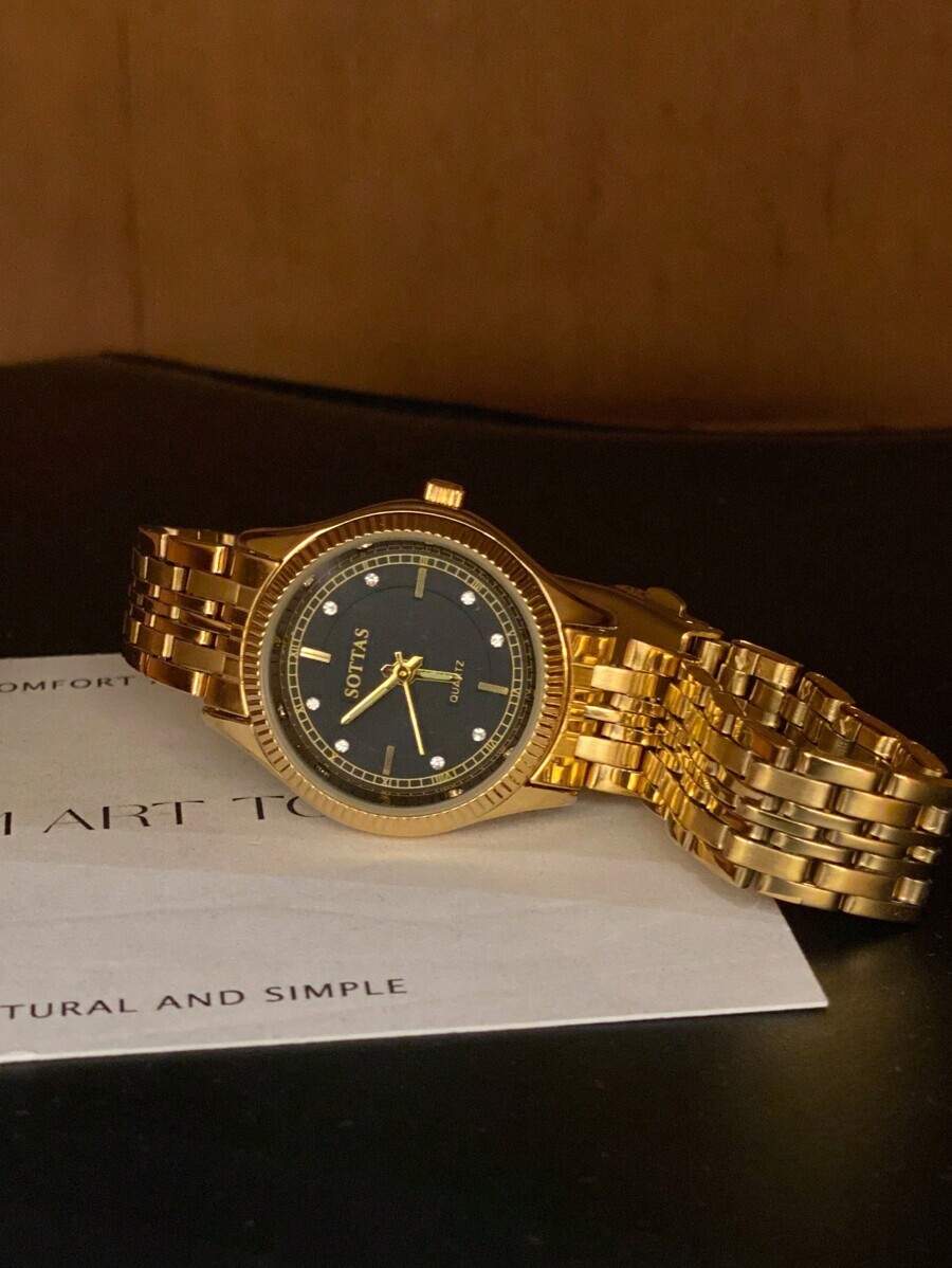 - 腕時計 レディース クォーツ 新作 ゴールド ブラック文字盤 レディース腕時計、韓国風 シンプル カジュアル 防水 ステンレス ク