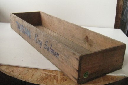 - レトロ 大きな木箱 味のある木製ケース TAISAN King Salmon サイズ:約24×80×H11㎝ /16N24.8-24