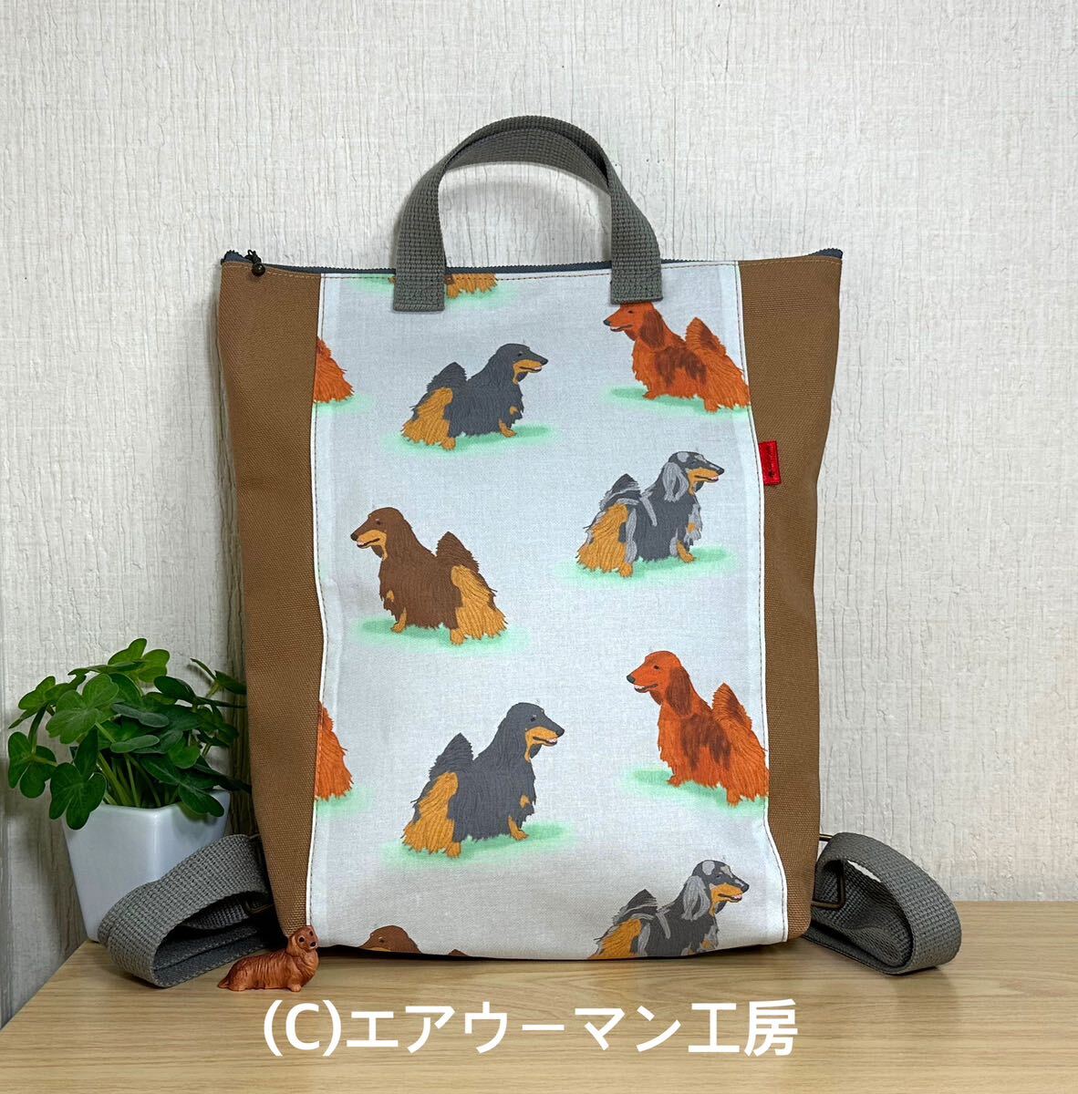 - ダックスフンド リュック バックパック バッグ 鞄 輸入生地使用 1点物 新品 犬柄 犬
