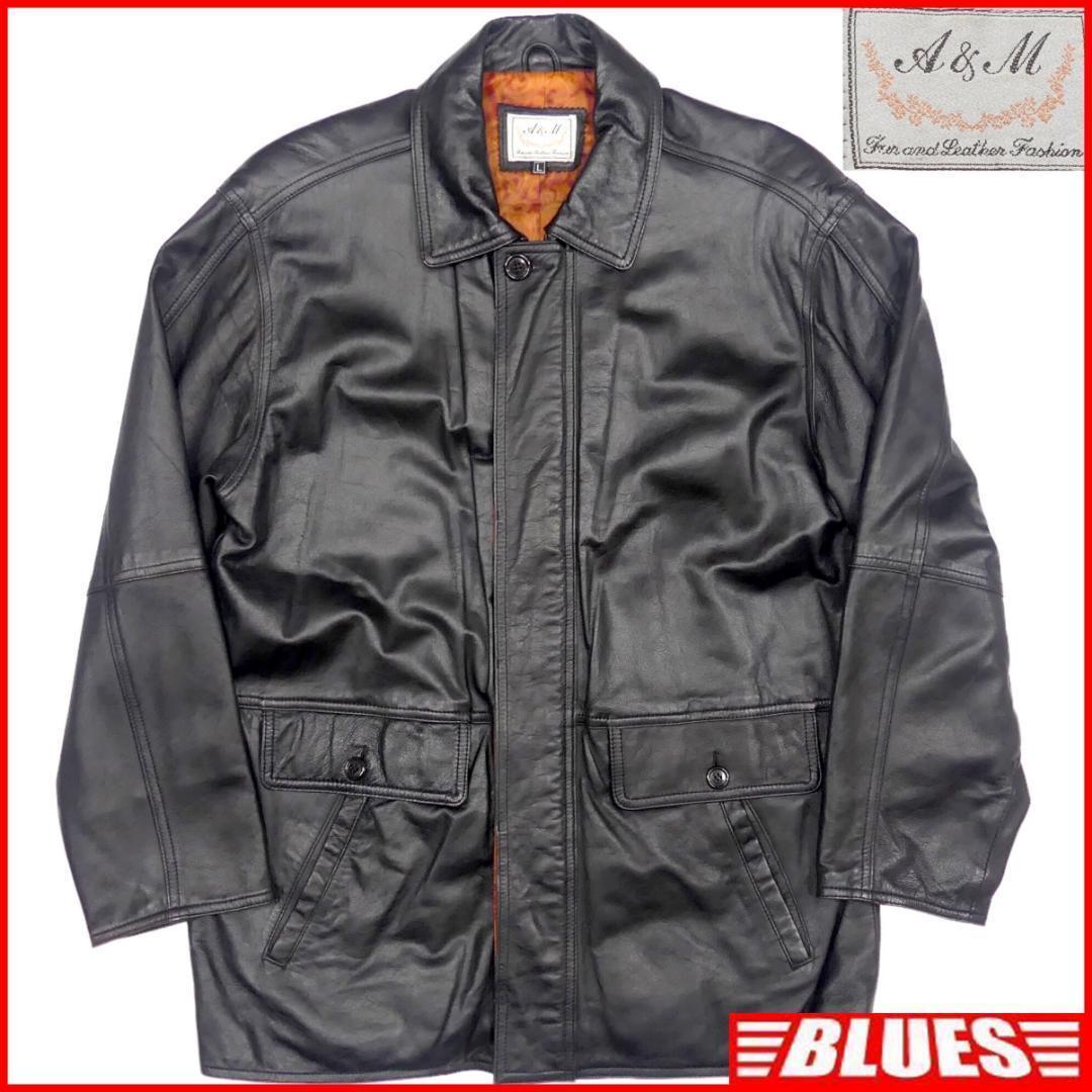 - 即決★A&M★メンズL レザーステンカラーコート エーアンドエム 黒 ペイズリー 本革 ジャケット 本皮 革ジャン ロングコート ハーフコート