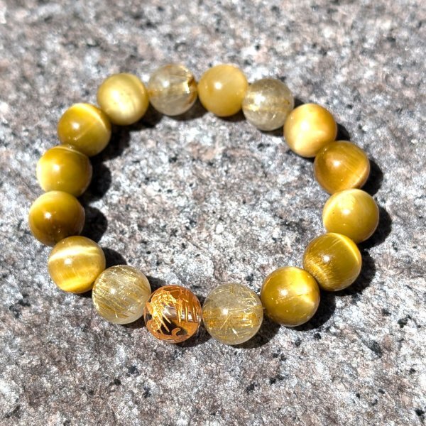 > 運気が上がる ゴールドルチルクォーツ ブレスレット 金彫皇帝龍 本水晶 ゴールデンタイガーアイ 数珠 12mm パワーストーン お守り ギフと