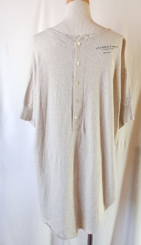 > Americana アメリカーナ バックボタン ヘンリーネックカットソー コットン 綿100% ベージュ 生成り 日本製 半袖 5分袖 ロンT