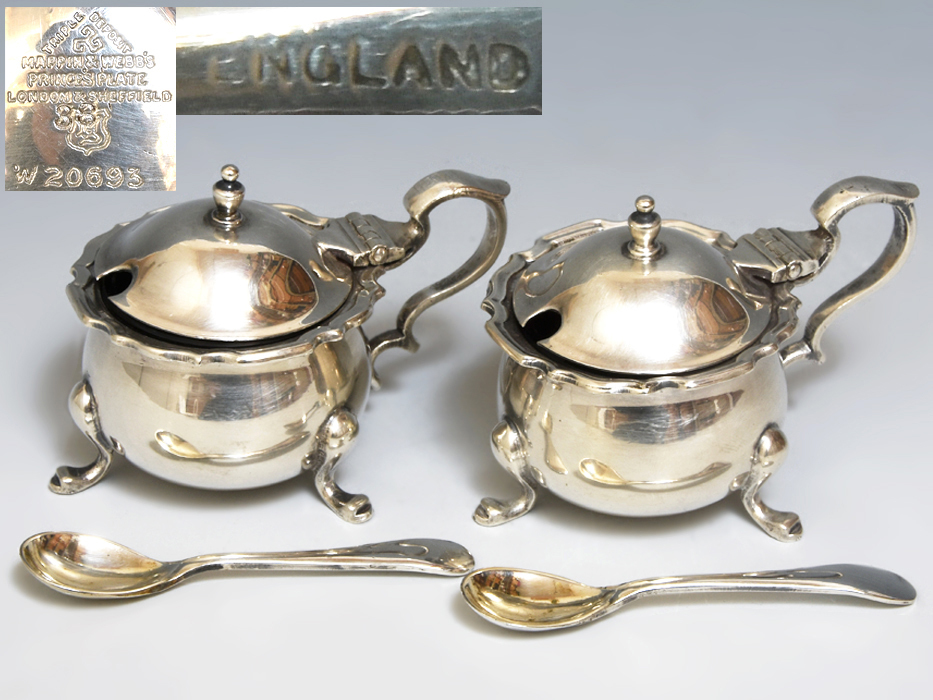 - 英国 アンティーク Mappin&Webb マッピン&ウェッブ シルバープレート 調味料入れ 2点セット 金属工芸 z8112a