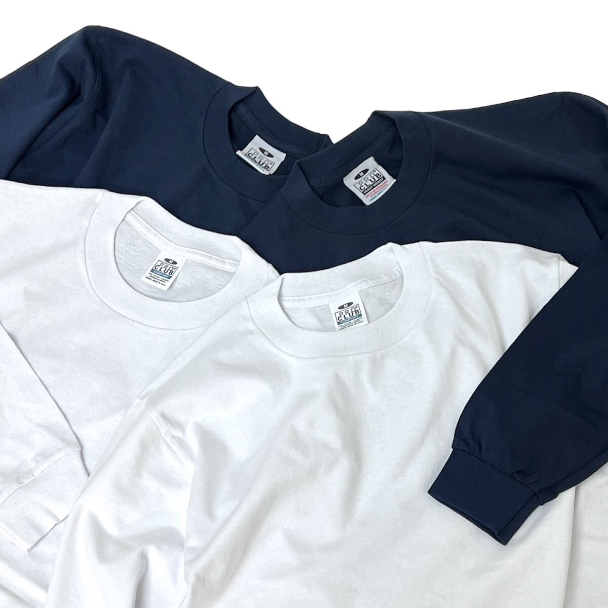 - 訳あり 4枚 PRO CLUB 長袖 Tシャツ M プロクラブ ホワイト&ネイビー ロンT 無地 男女兼用 まとめ売り 未使用 #noca0472-FS