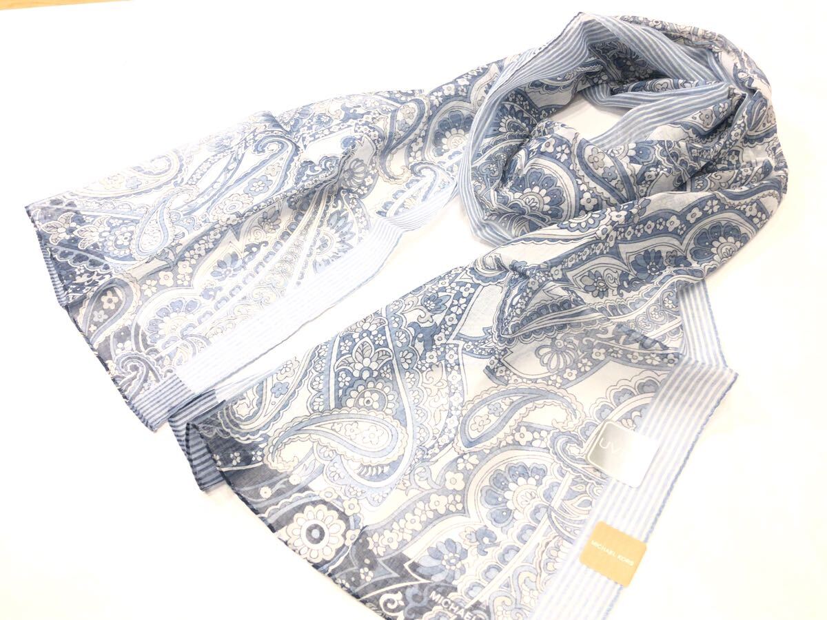 - 新品 マイケルコース 薄い ストール ペイズリー ブルー エトロ風 紫外線防止に