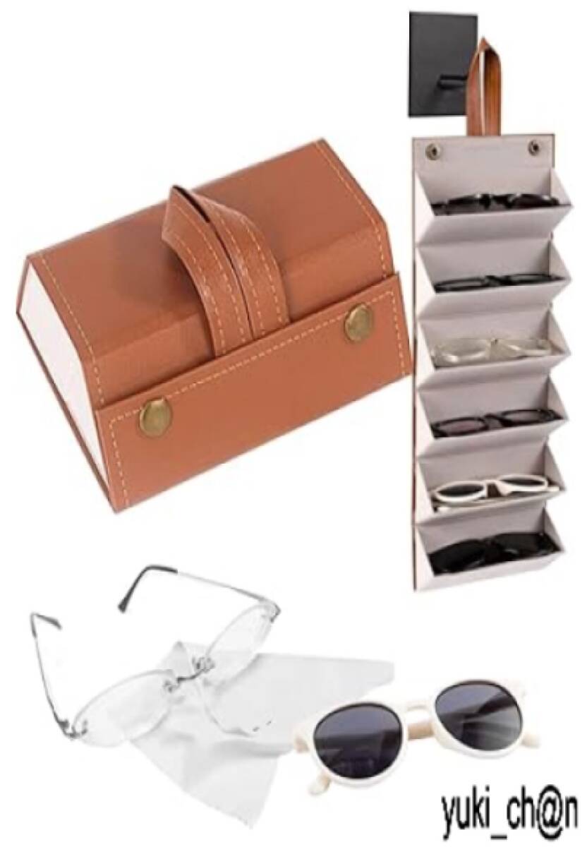 - メガネケース 3本収納 ブラウングレー スタンド 複数 収納 サングラス おしゃれ 眼鏡置き ホルダー 縦置き