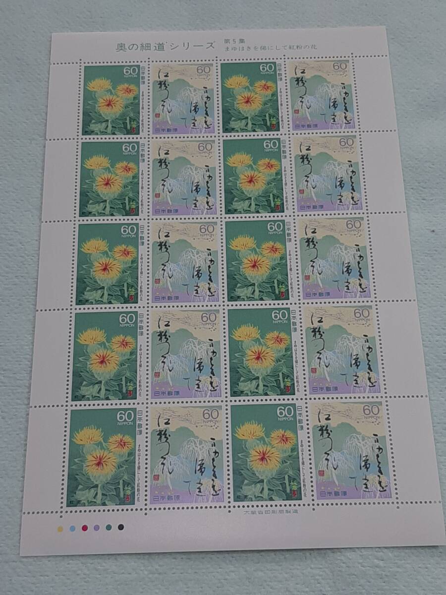 奥の細道シリーズ 第5集 まゆはきを俤にして紅粉の花 1987 切手シート1枚