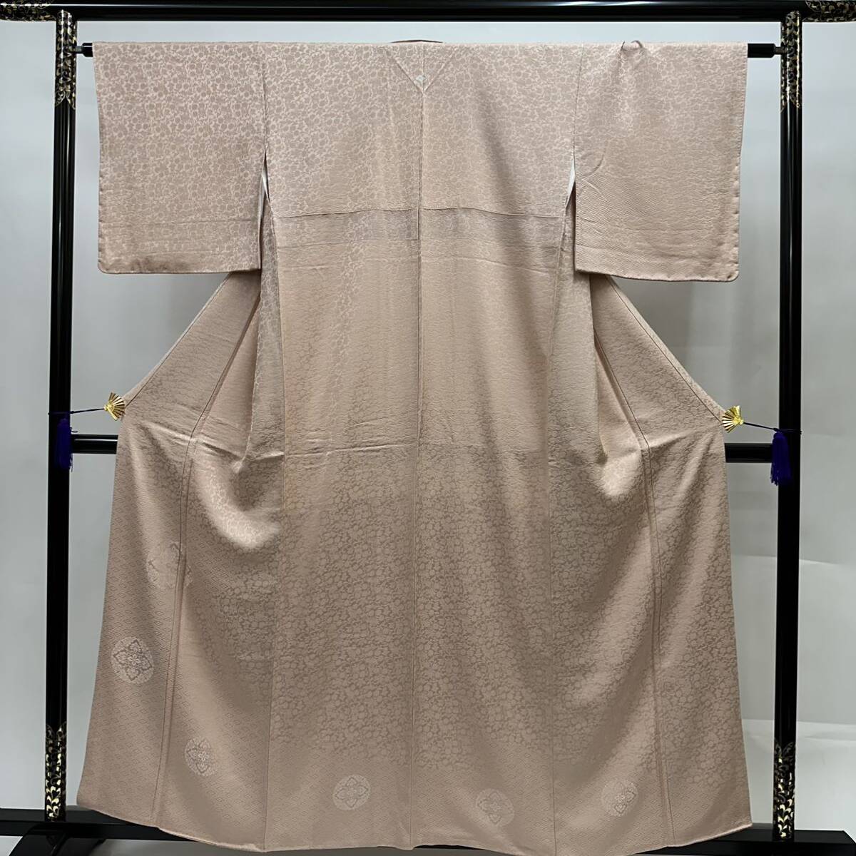 - 【七福】c245 色無地 付下げ 袷 着物 唐草紋 宝相華 暗紋 紋意匠 紋入り 一ツ紋 正絹 身丈 約157cm 裄 約62cm