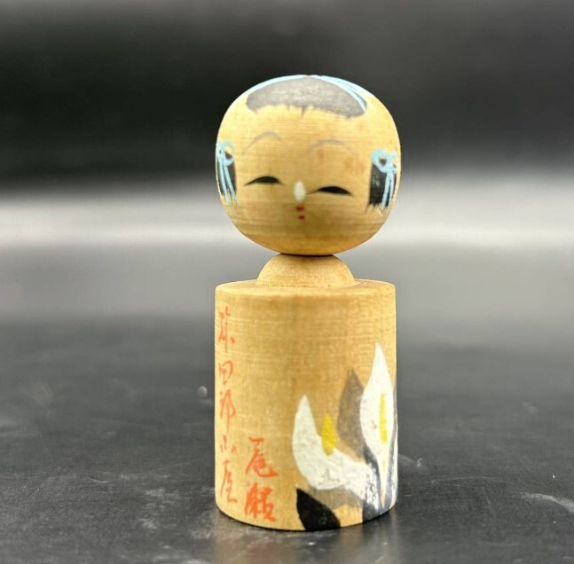 - こけし 水芭蕉 尾瀬 伝統こけし 人形 郷土玩具 木彫り 手描き オブジェ フィギュア 玄関 古物 アンティーク 置物 58-3