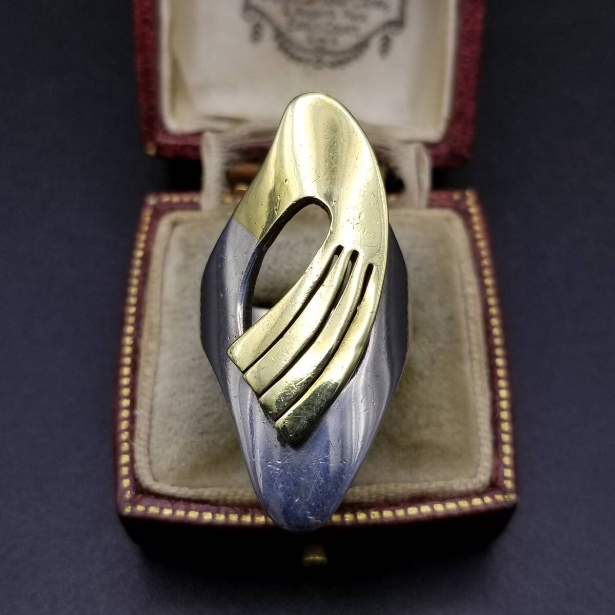- MEXICO TAXCO メキシコ タスコ 翼 モチーフ オーバル ゴールドMIX ビッグシルエット 925 ヴィンテージ シルバー リング 指輪 R13-L
