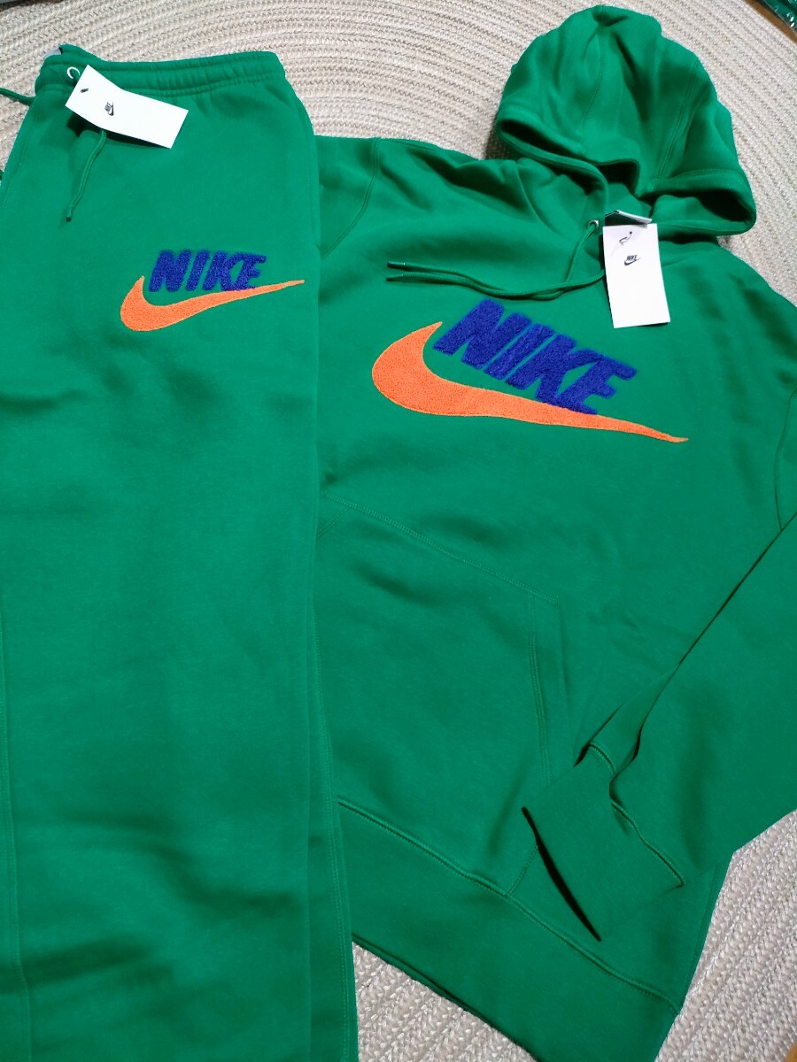 > 新品 定価21010 NIKE ワッフルロゴ スウェット セットアップ グリーン 緑 XL ナイキ 上下 ナイキ メンズ パーカー パンツ