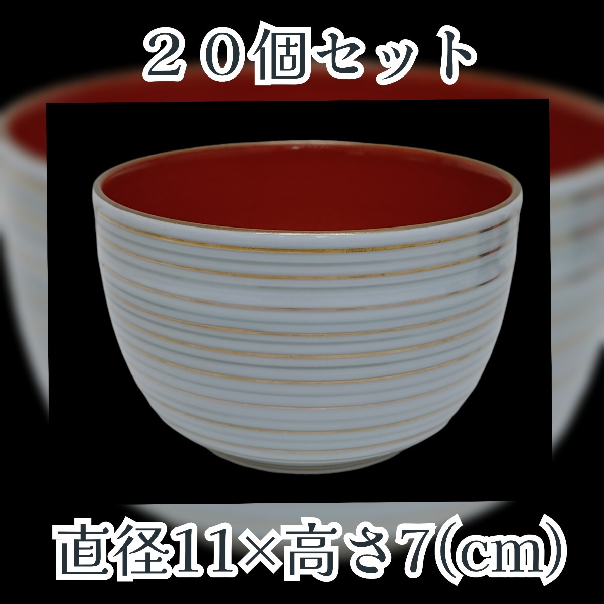 - 岩⑱) 内朱巻錆金千段 茶碗 20個セット 直径11×高さ7cm 金ライン 和食器 料亭 旅館 陶器 食器 器 懐石 定食 飲食店 店舗 業務用 240904