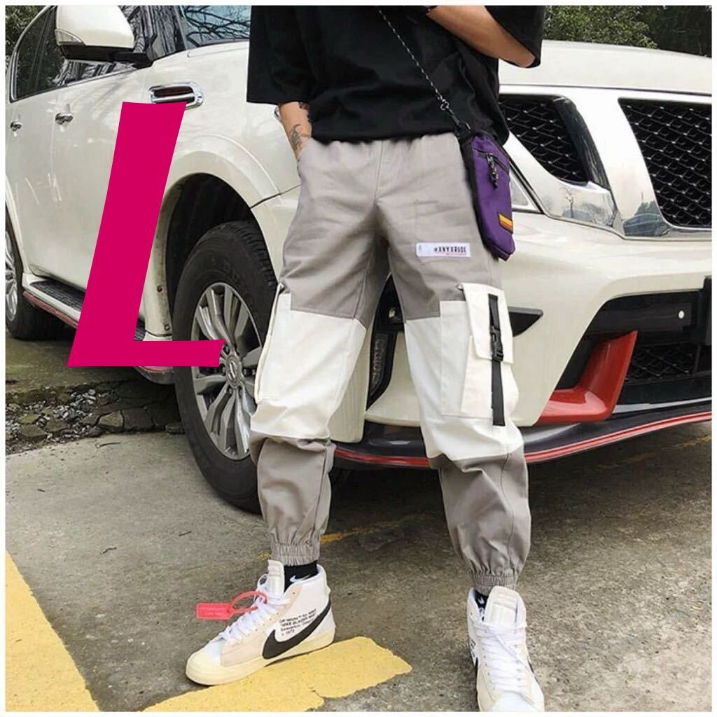 - カーゴパンツ ボトムス ワイドパンツ ジョガーパンツ ツートン ユニセックス 男女兼用 白 グレー L