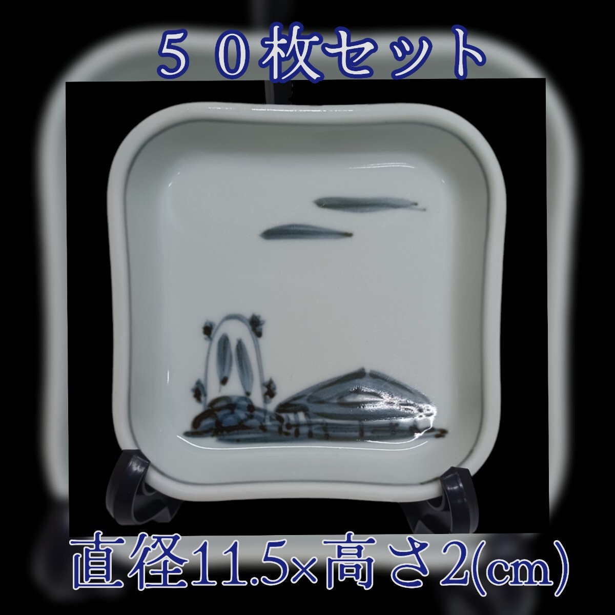 > 岩⑳-7) 角皿 50枚セット 直径11.5×高さ2cm 和食器 料亭 旅館 小皿 陶器 食器 皿 緑 懐石 割烹 定食 飲食店 店舗 業務用 240905