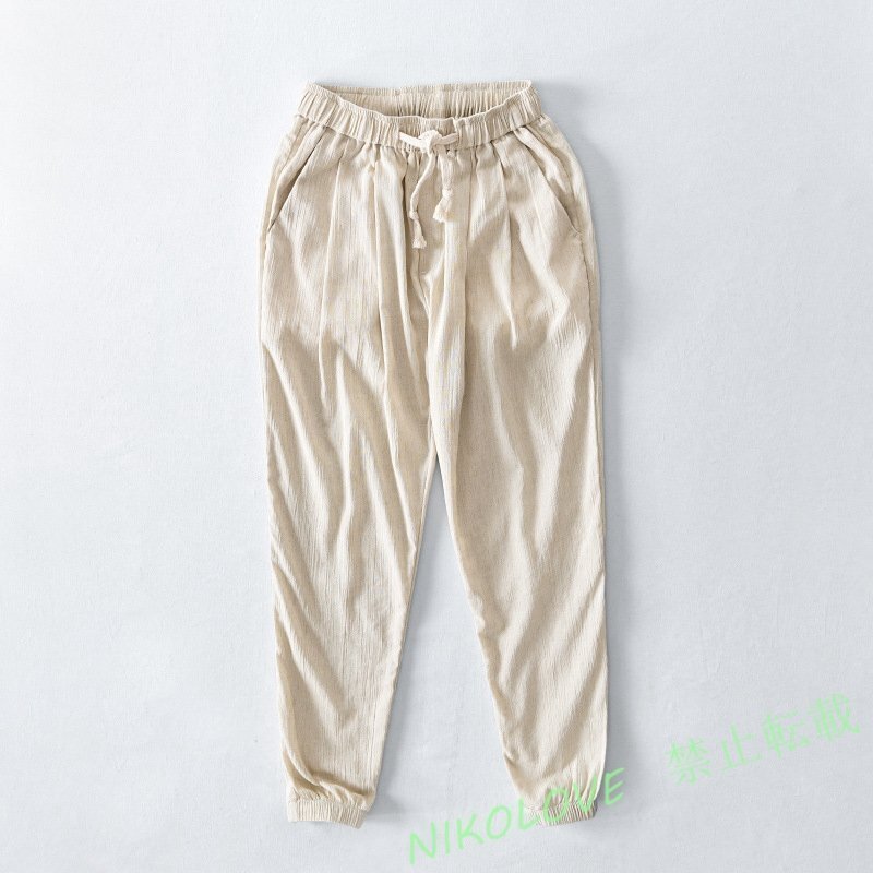 - 新品 選択可 メンズ リネン サマー 薄手 チノパン 綿麻 紳士 スラックス イージーパンツ 九分丈 リブパンツ 無地 カーキ LF657