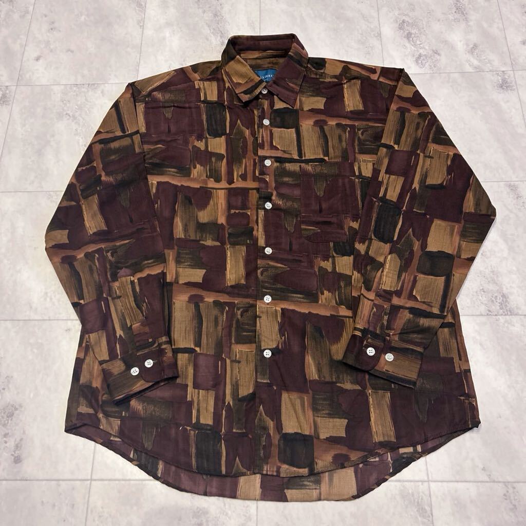 - DOUX DOUCE 総柄 柄シャツ レトロ アート ビンテージ 長袖シャツ ポリエステル100%
