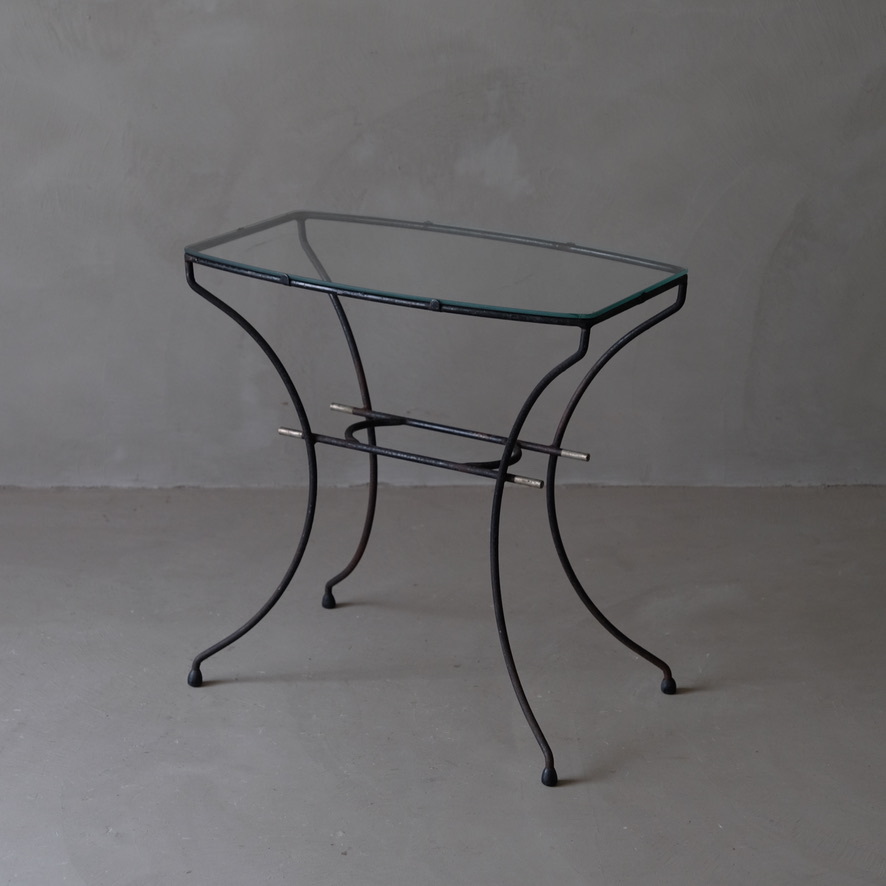 > 03297 ガラストップ 鉄脚サイドテーブル / センターテーブル 展示台 ヴィンテージ レトロ モダン