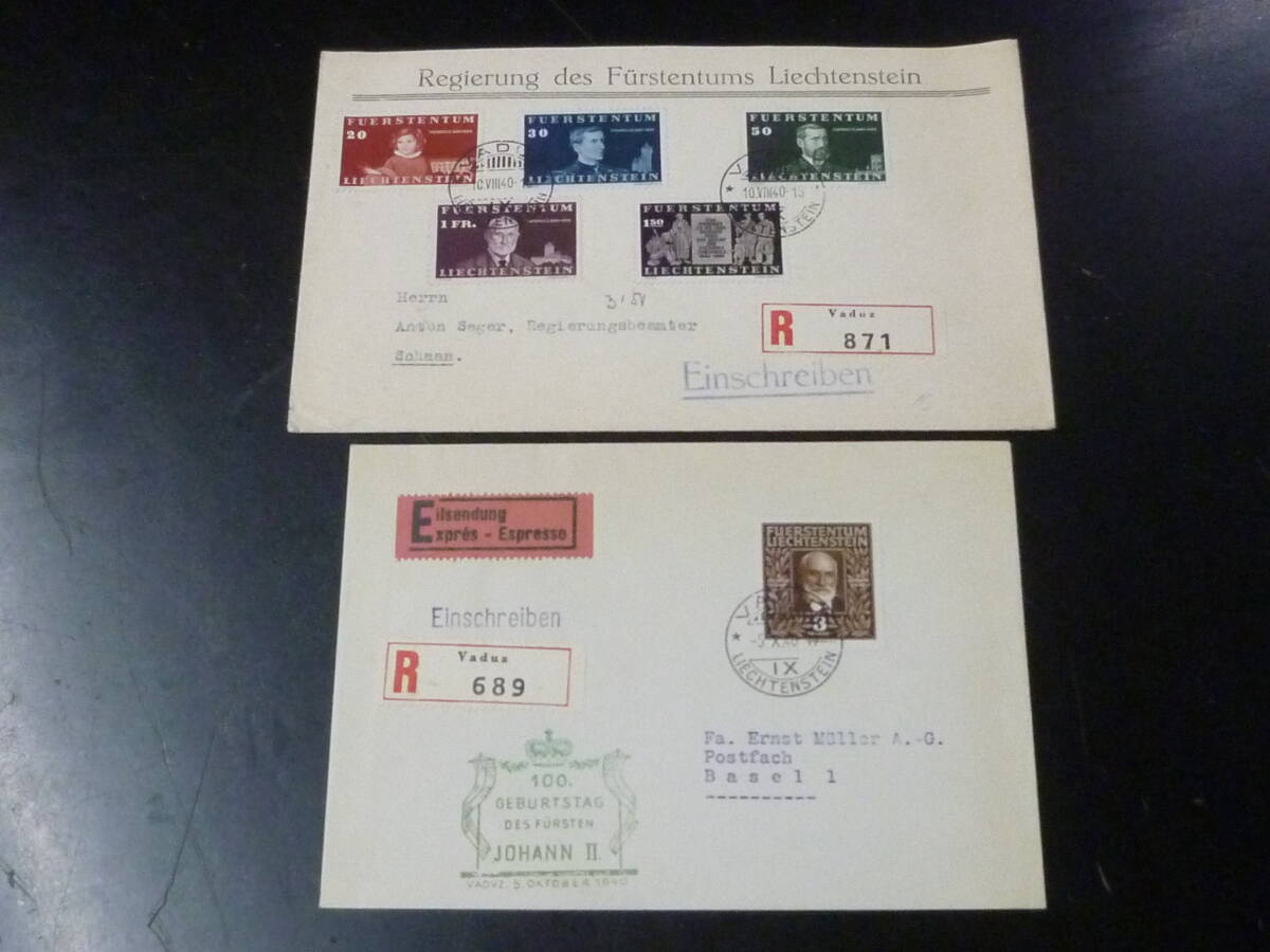 - 24L S №16 リヒテンシュタイン切手カバー 1940年 SC#160-65 計6種貼 2通 3印付 書留便 ※説明欄必読