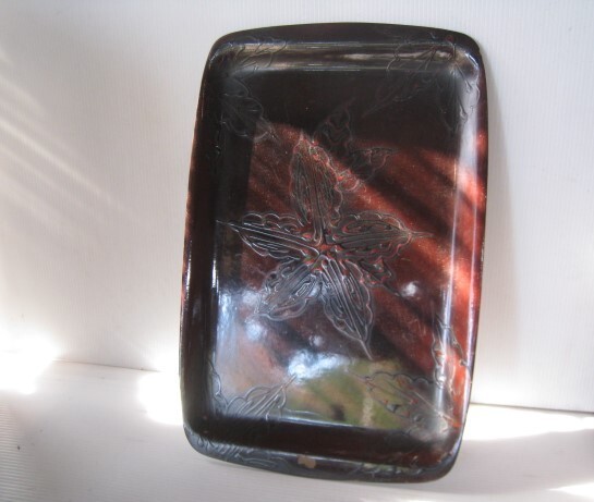 - レトロ 漆器のお盆 おぼん 菱正宗作 ハゲあり トレー サイズ:約51×34㎝/21N10.19-10