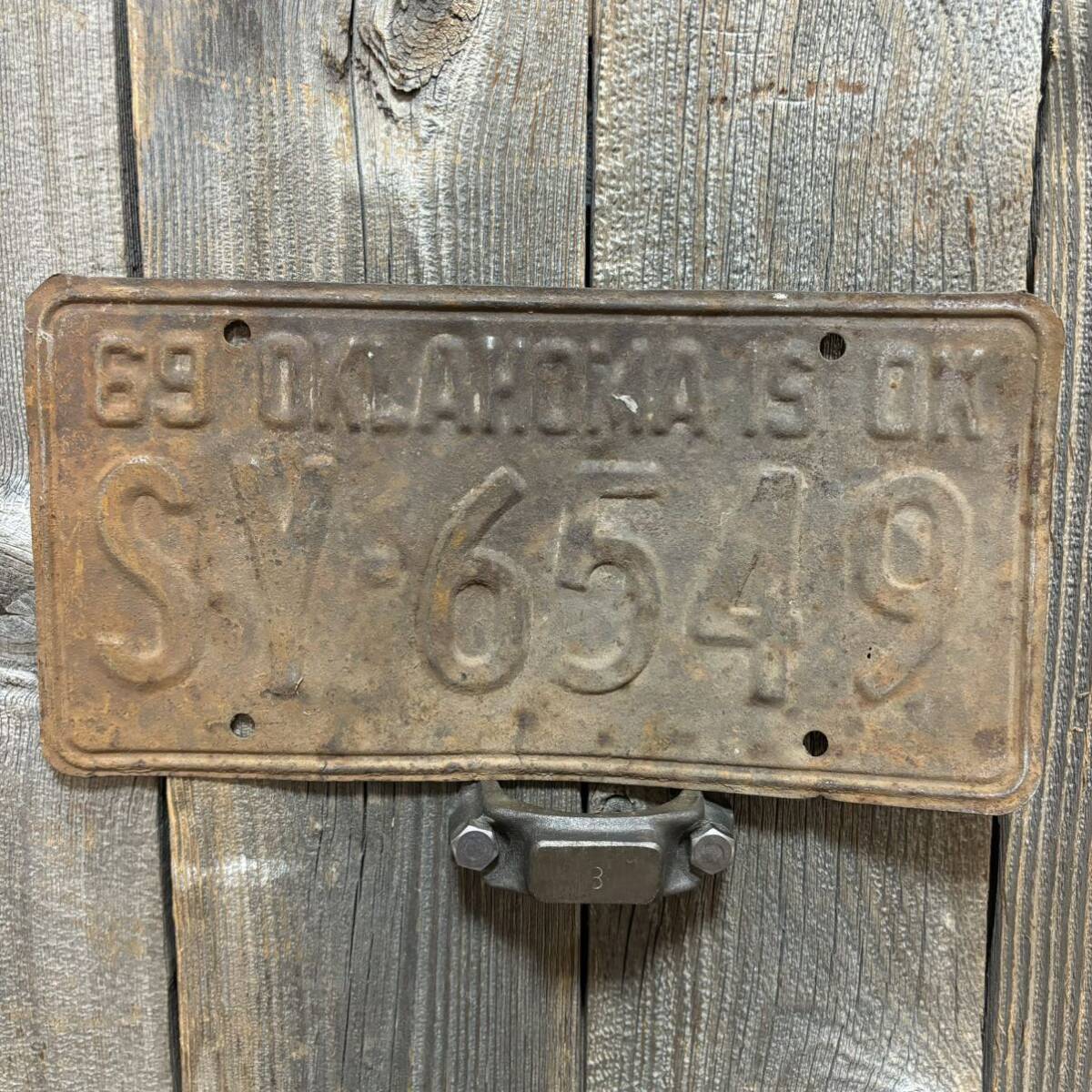 - 6549 アメリカヴィンテージナンバープレートライセンスプレートオクラホマ州 1969年)錆プレートアメリカ雑貨ガレージアメ車シボレーダッジ