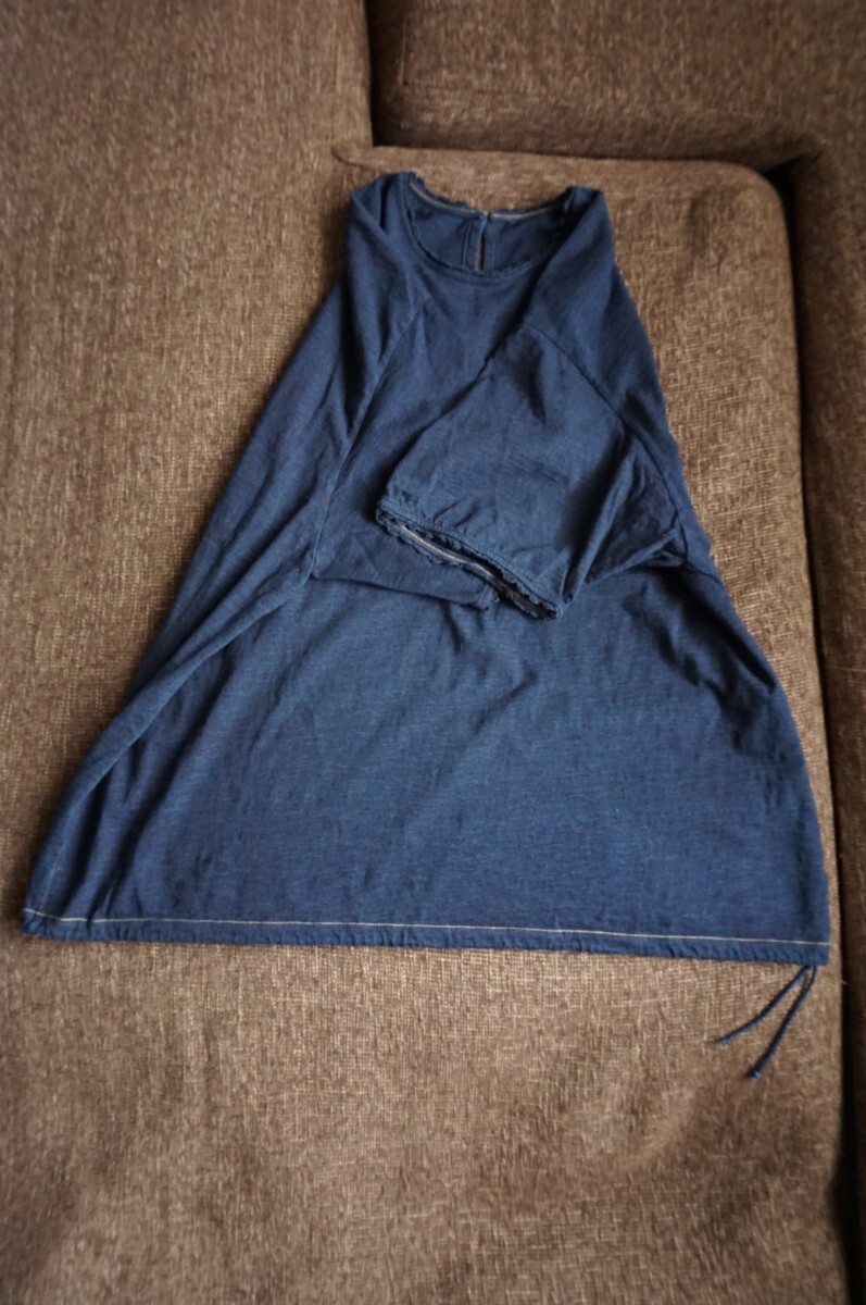 > ★22年購入×控えめにほんのり効かせたレース使い◎藍染め天竺のTシャツ ブラウス★ 45rpm 45R カットワーク インディゴ染め チュニック
