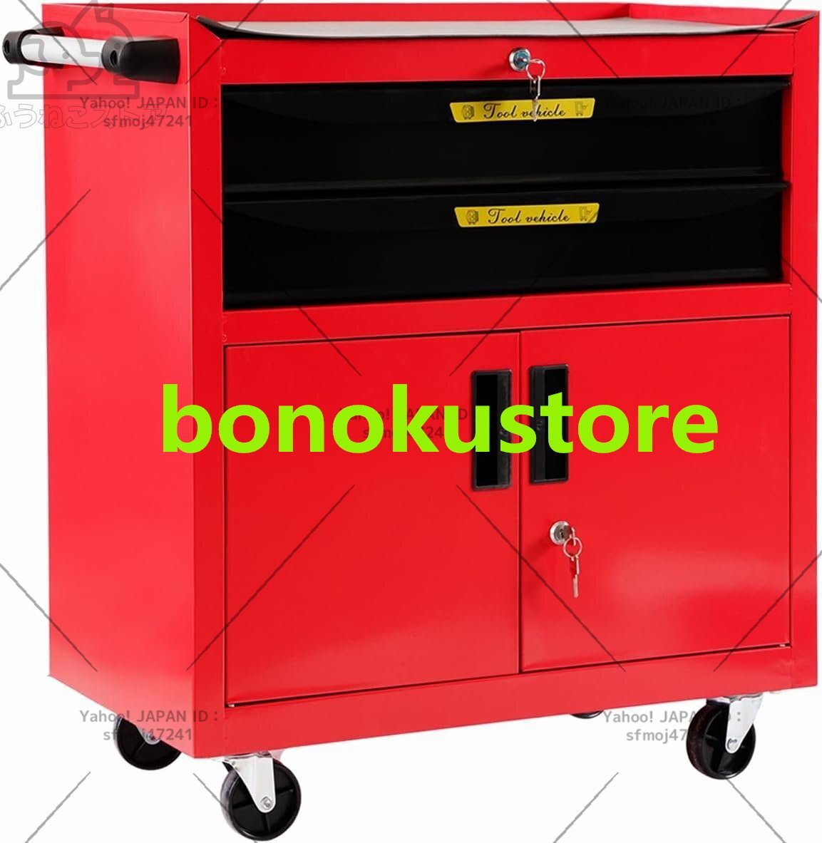 - ツールキャビネット 大型 キャスター付 ツールチェスト 引き出し ロック付 工具収納 大容量 ハンドル付 DIY ガレージ ツールワゴン 赤