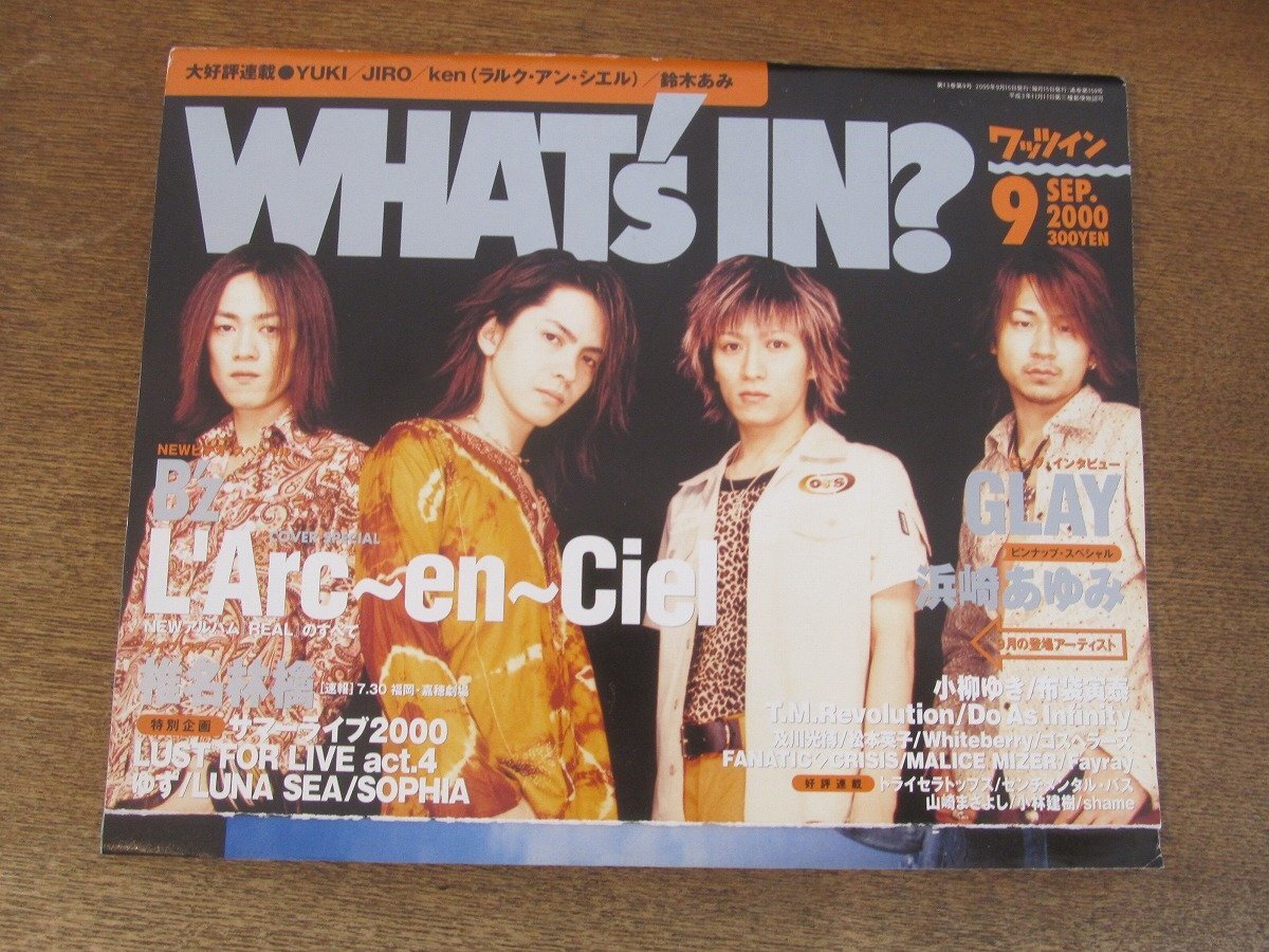 > 2409ST●WHAT's IN? ワッツイン 2000.9●表紙:L'Arc~en~Ciel(ラルクアンシエル)/GLAY/浜崎あゆみ/椎名林檎/小柳ゆき/T.M.Revolution