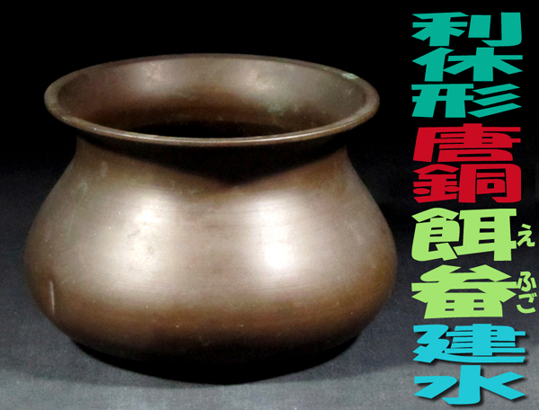 > ★☆本物保証★利休形・唐銅.餌畚(エフゴ)建水★Rinse-water Receptacle★鷹匠が腰に携えた餌袋の形・打痕傷が2箇所有ります・箱無☆★