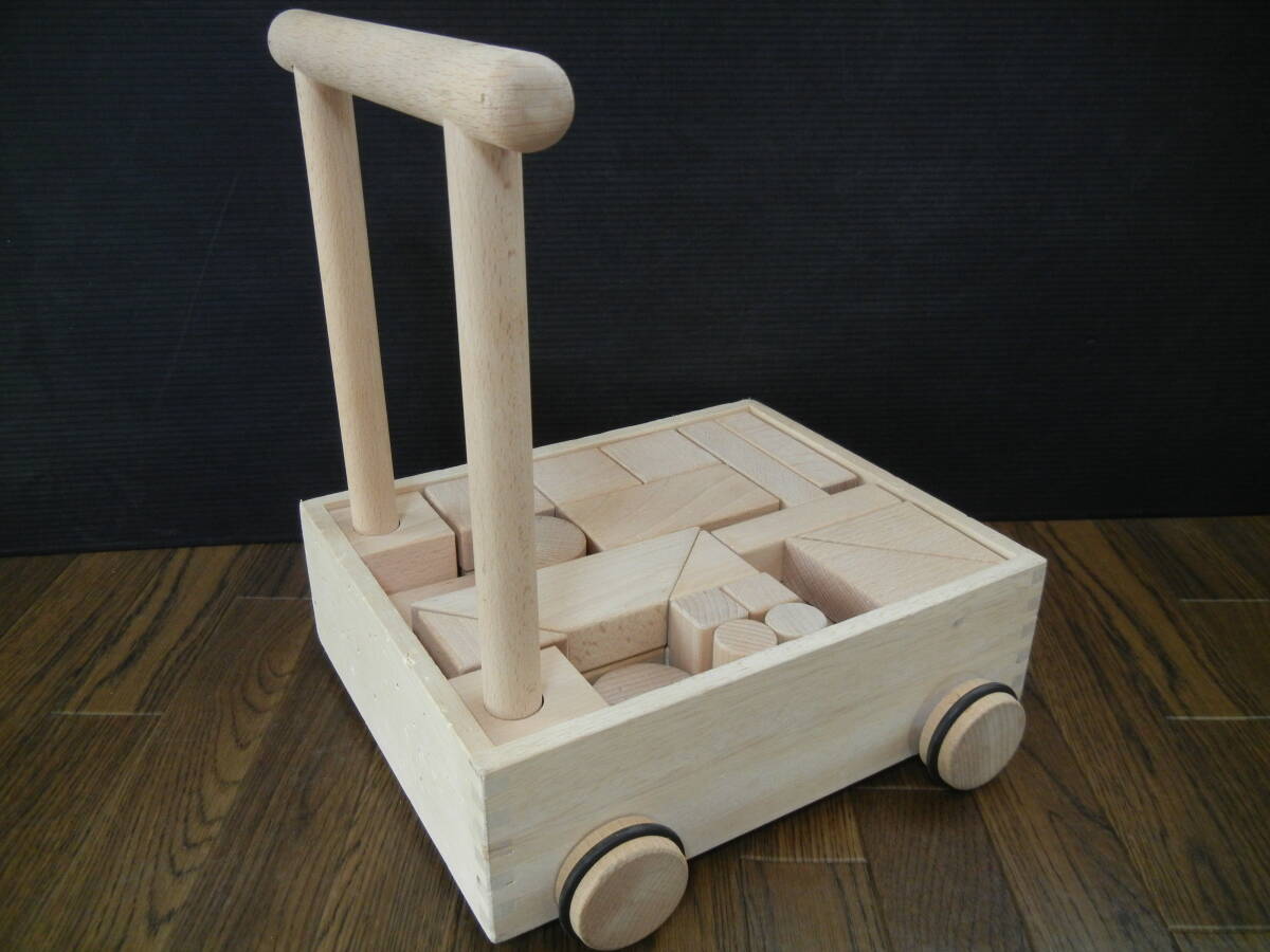 - ♪♪【6I14⑥p】木のおもちゃ・押し車つみき 木製 天然木 知育玩具 手押し車 積み木 河合楽器♪♪