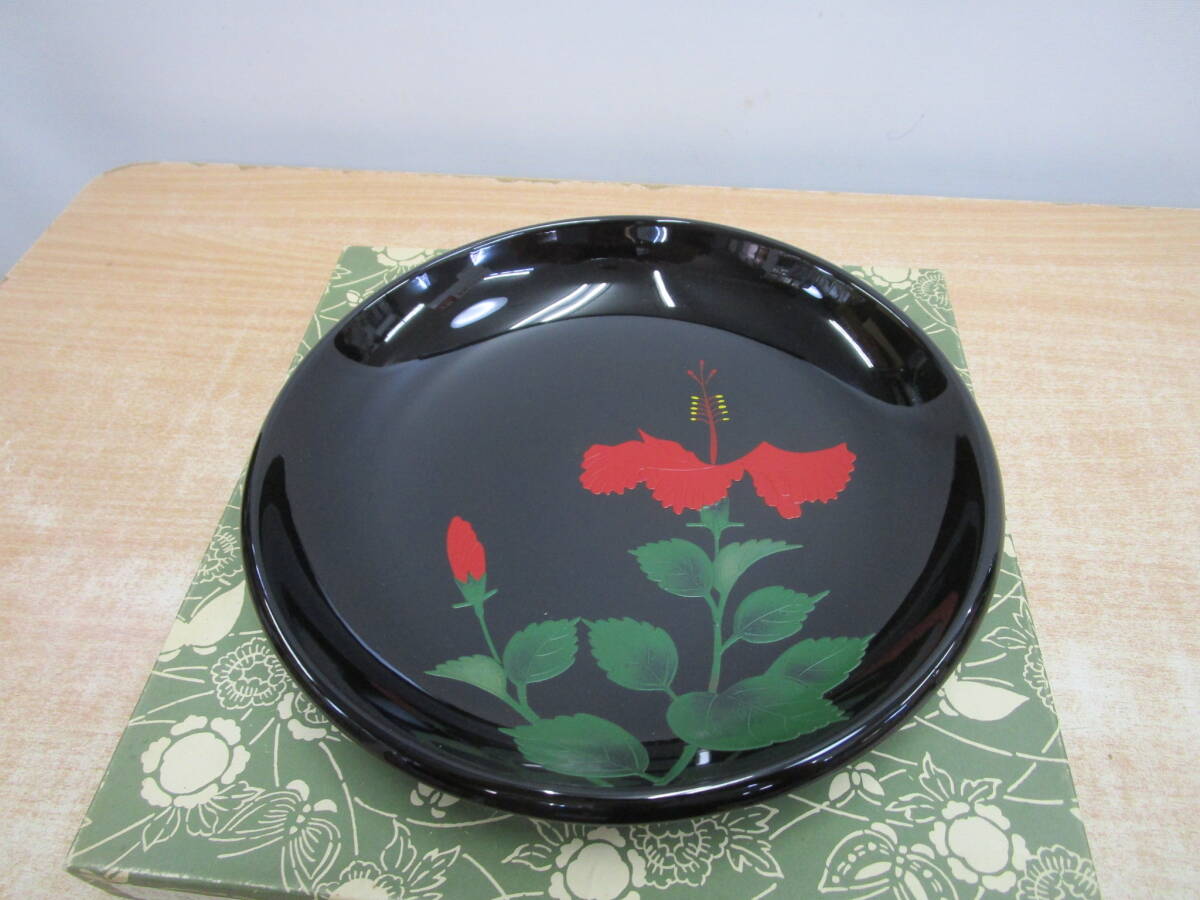 - O268★琉球漆器 果物鉢 ハイビスカス★未使用品