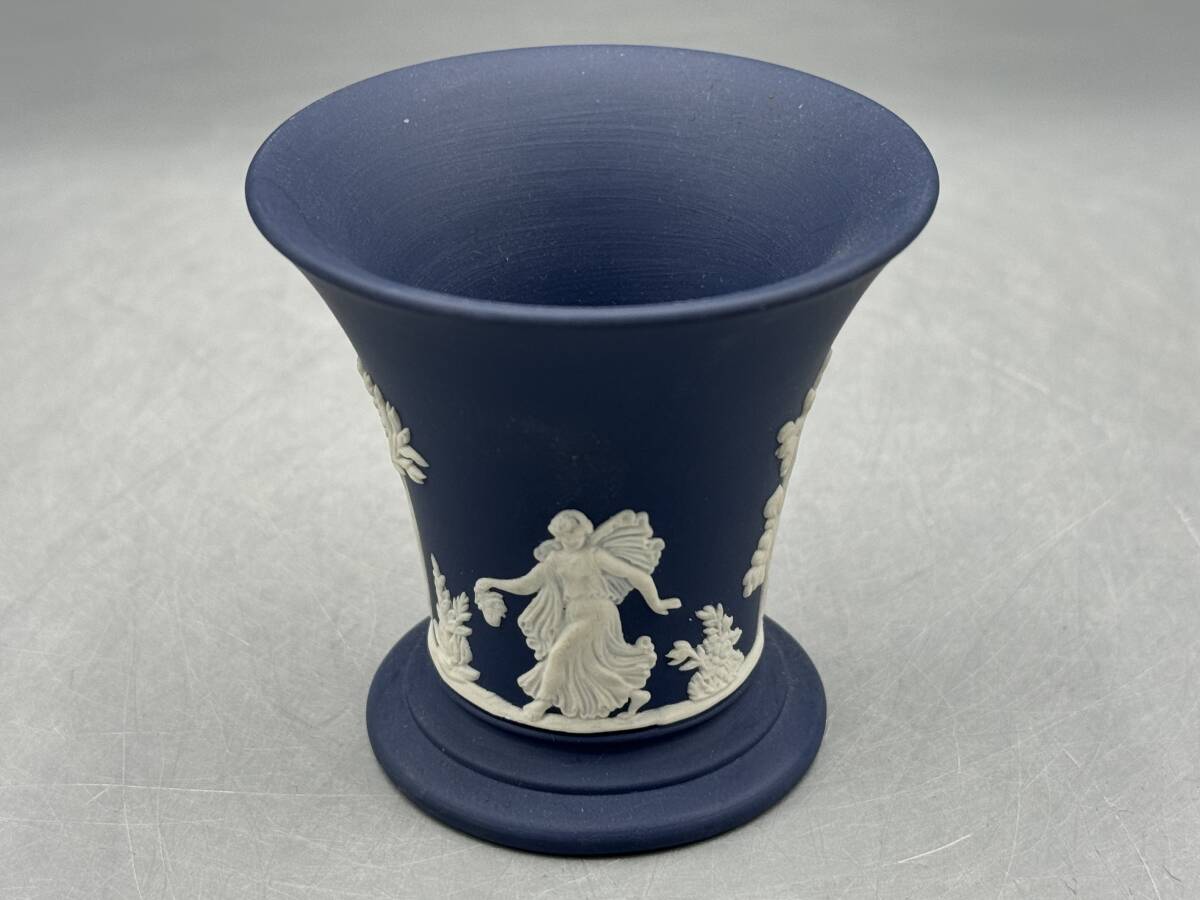 - 希少 英国 ウェッジウッド ジャスパーウェア ブルー 紺 花瓶 ダンシングアワー フラワーベース ジャスパー (779) レア