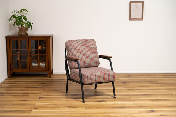 - ソファ ソファー 1人掛け コンパクト レトロ チェック柄 肘付き 布グレー