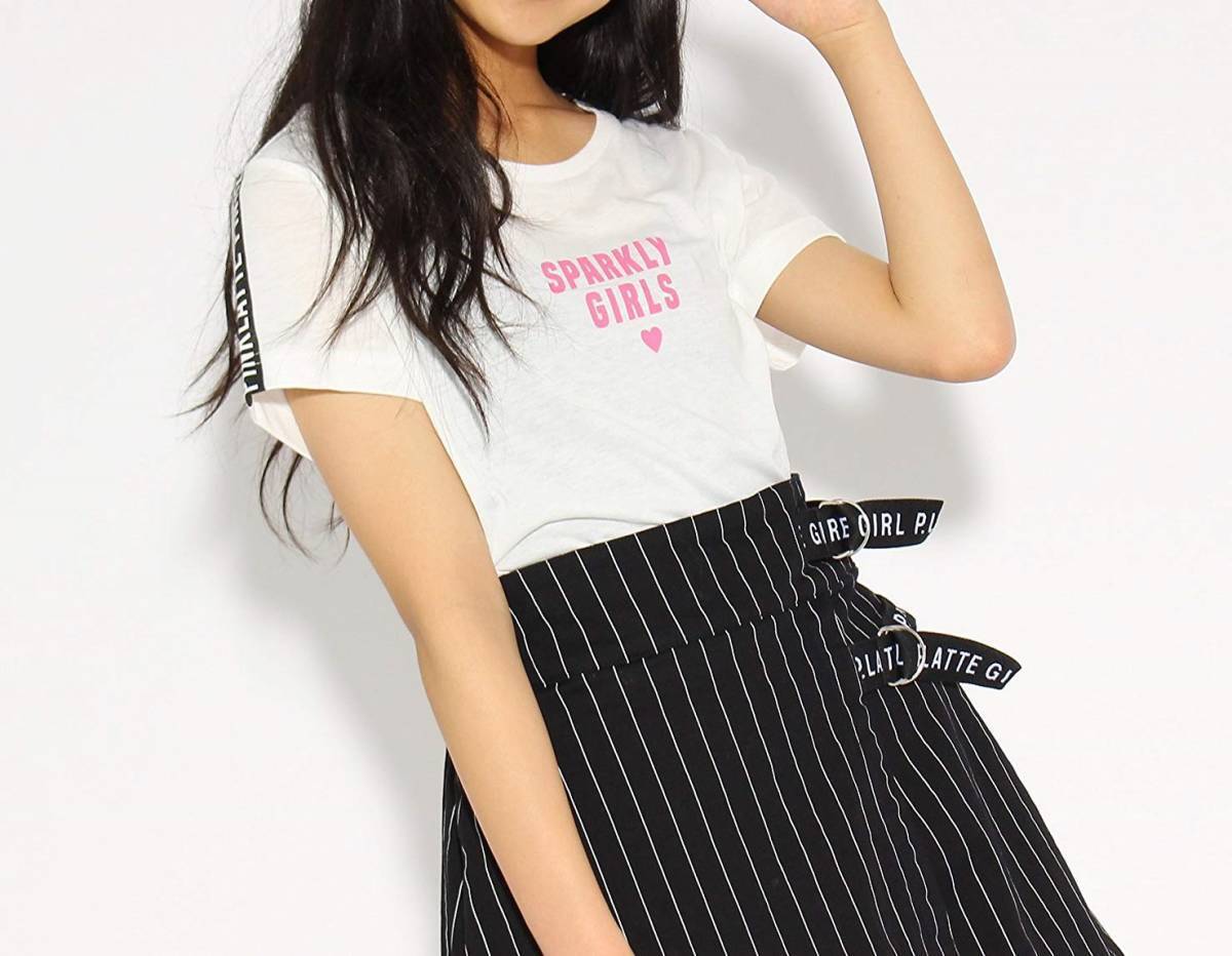 > 新品 PINK-latte ロゴテープスリーブ Tシャツ オフホワイト(003) 15(150cm) 定価1078円