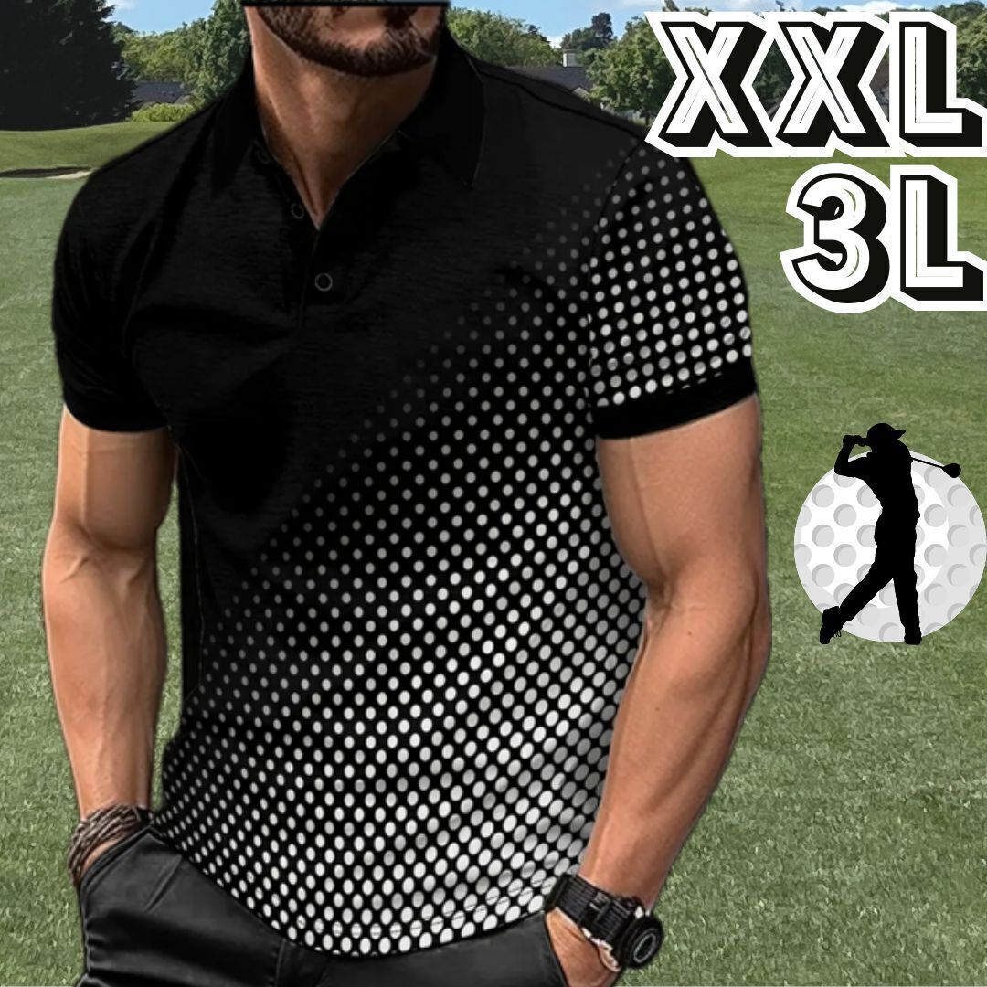 - セール★ポロシャツ メンズ ゴルフウェア 半袖 春夏★大きいサイズ XXL 3L★ホワイト 白 ブラック 黒★テニスウェア スポーツウェア