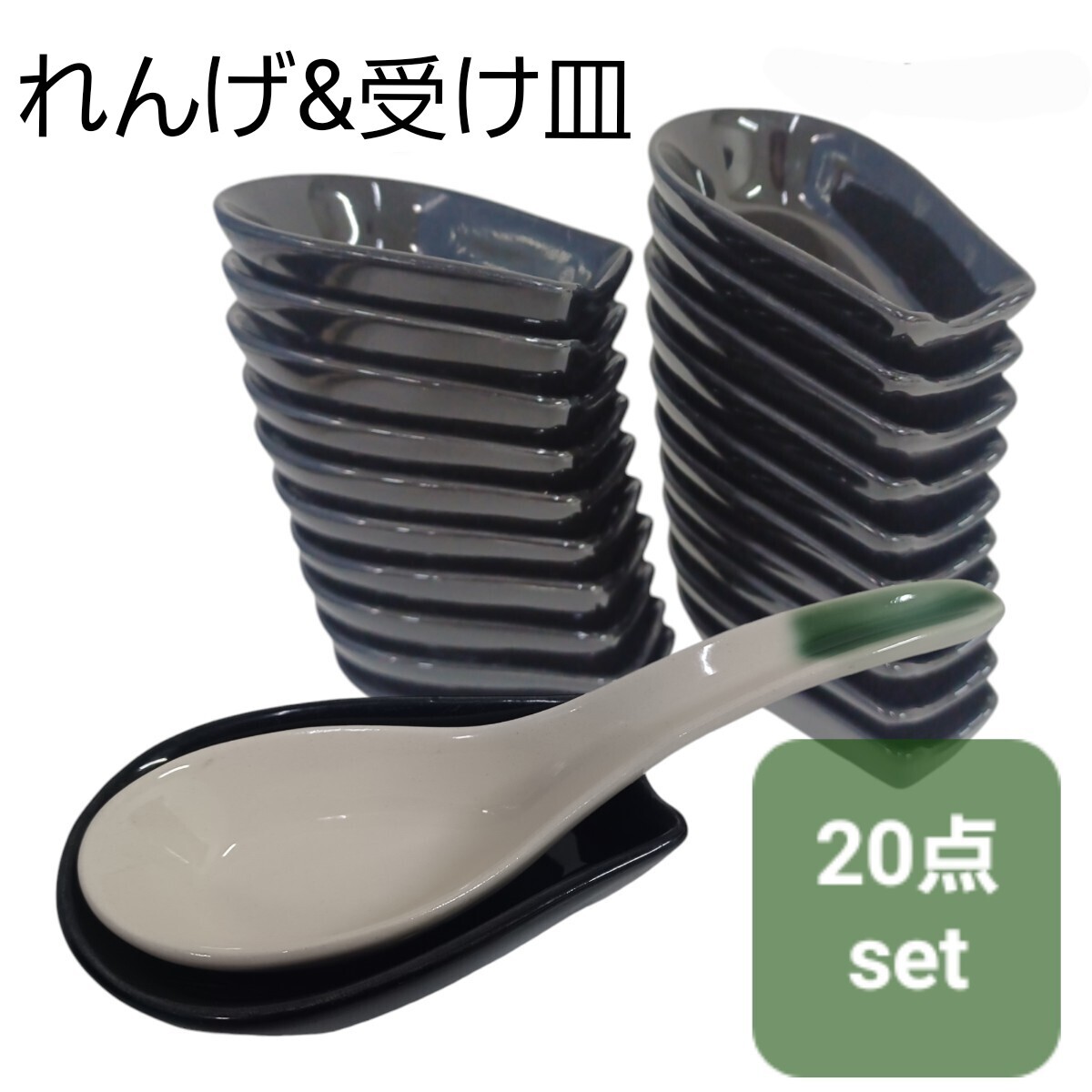 - 高52【20個】れんげ & 受け皿 セット れんげ置き レンゲ 和食器 和風 飲食店 業務用 店舗 料亭 飲食店 陶器 食器 240917